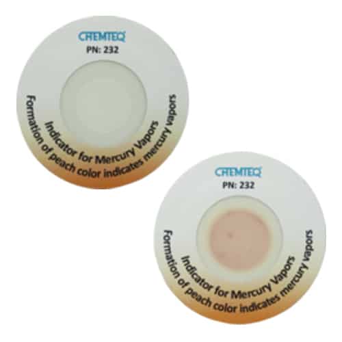 The Mercury Detection ChemWipe PN: 306 is a colorimetric surface wipe designed to provide real-time indication of the presence of trace amounts of mercury and mercury II compounds on surfaces. The Mercury Detection ChemWipe is selective and sensitive. The unique design of the ChemWipe provides uniform color change formation enabling user to quantify chemical contamination using the color comparator. After using the Mercury Surface Wipes, use the Mercury Color Comparator to quantify the mass of mercury collected on the Mercury Surface Wipe